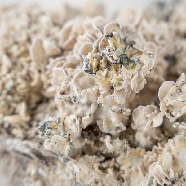Quando arriva il momento della raccolta, evita di torcere o strappare. La massa di Enigma forma un blocco denso e compatto che copre gran parte della superficie del substrato. Torcere potrebbe danneggiare la base e compromettere l’integrità del substrato. Opta invece per un bisturi affilato o una lama fine per un taglio controllato.